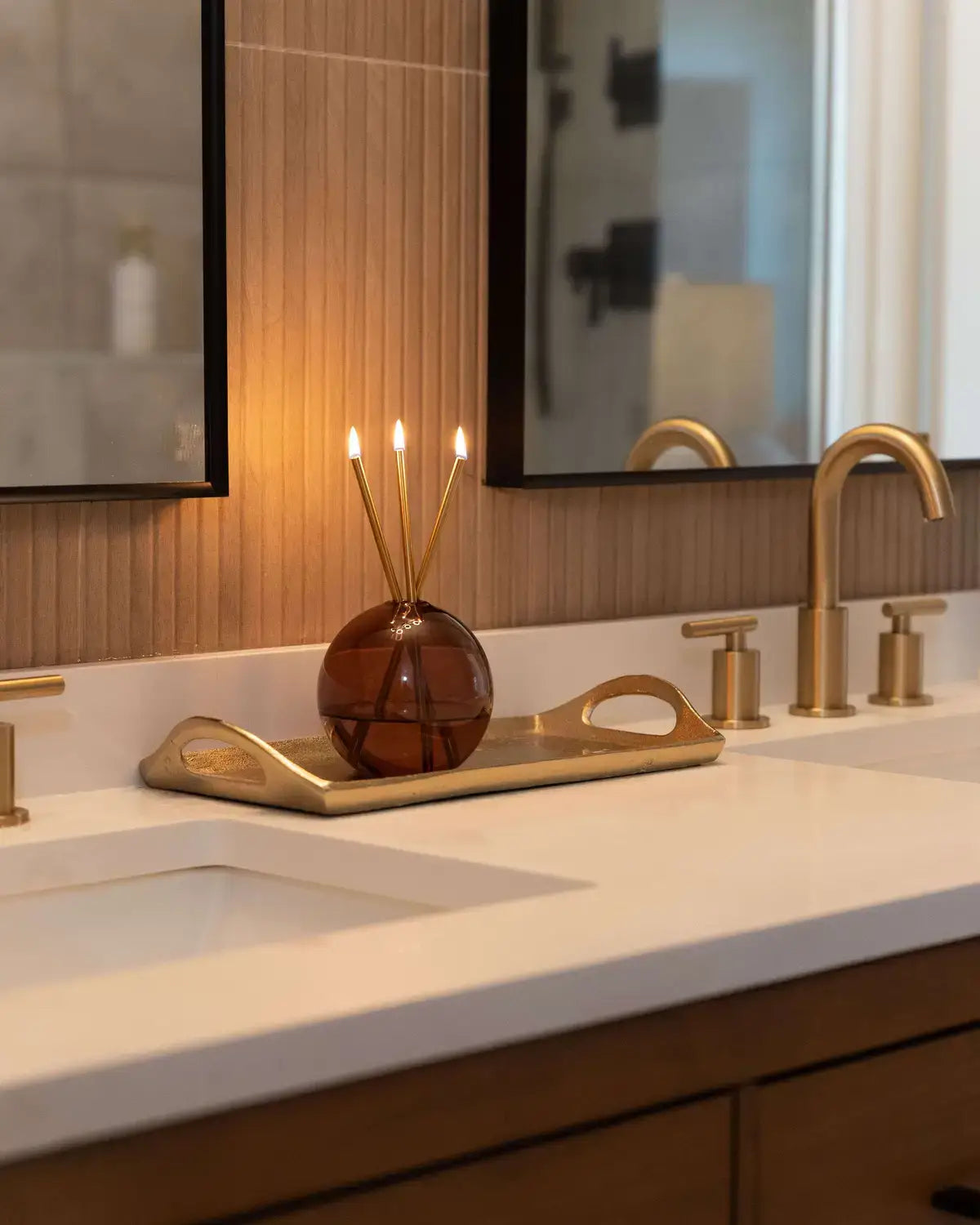 Neva Vase in Prairie Dust—a hand-blown borosilicate glass vessel inspired by snow globes. This sculptural piece cradles your Everlasting Candles while bringing warmth and togetherness to any space. Earthy tones with elegant detailing make each one unique. 4.5"H x 4.25"L. Exclusive design, 100% recyclable packaging.
