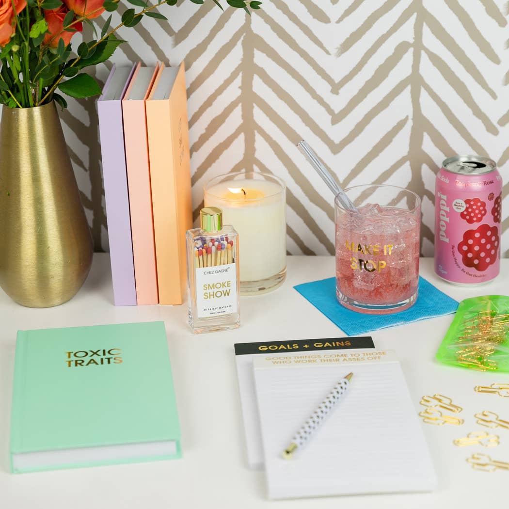 Because ordinary matches just don’t cut it. Meet Smokeshow — the fiery little bottle that brings all the drama. With rainbow-tipped matches packed in a luxe glass vessel and topped with a gold lid, this isn’t just a utility item, it’s a damn statement piece. Strike one up and watch your vibe go from zero to 🔥.