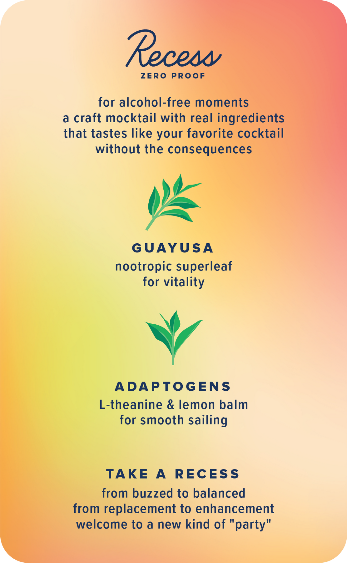 0% abv craft mocktail with uplifting guayusa & balancing adaptogens. Tastes & feels like a fresh lime margarita with real agave & a touch of salt.
