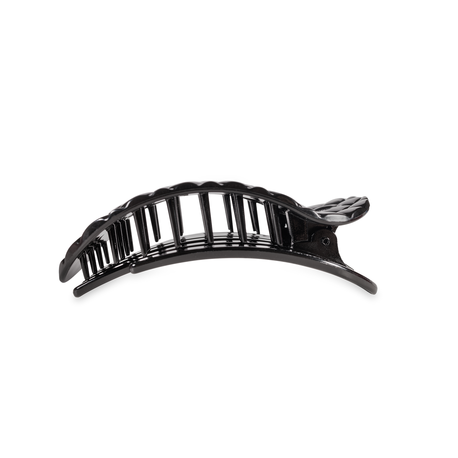 Lay flat and relax with the new TELETIES Jet Black Quilted Medium Flat Round Hair Clip in Black. This hair clip is designed to allow you to lay back flat, do yoga, or sit comfortably in a seat with a headrest, and it is made with the same material that is nearly unbreakable.