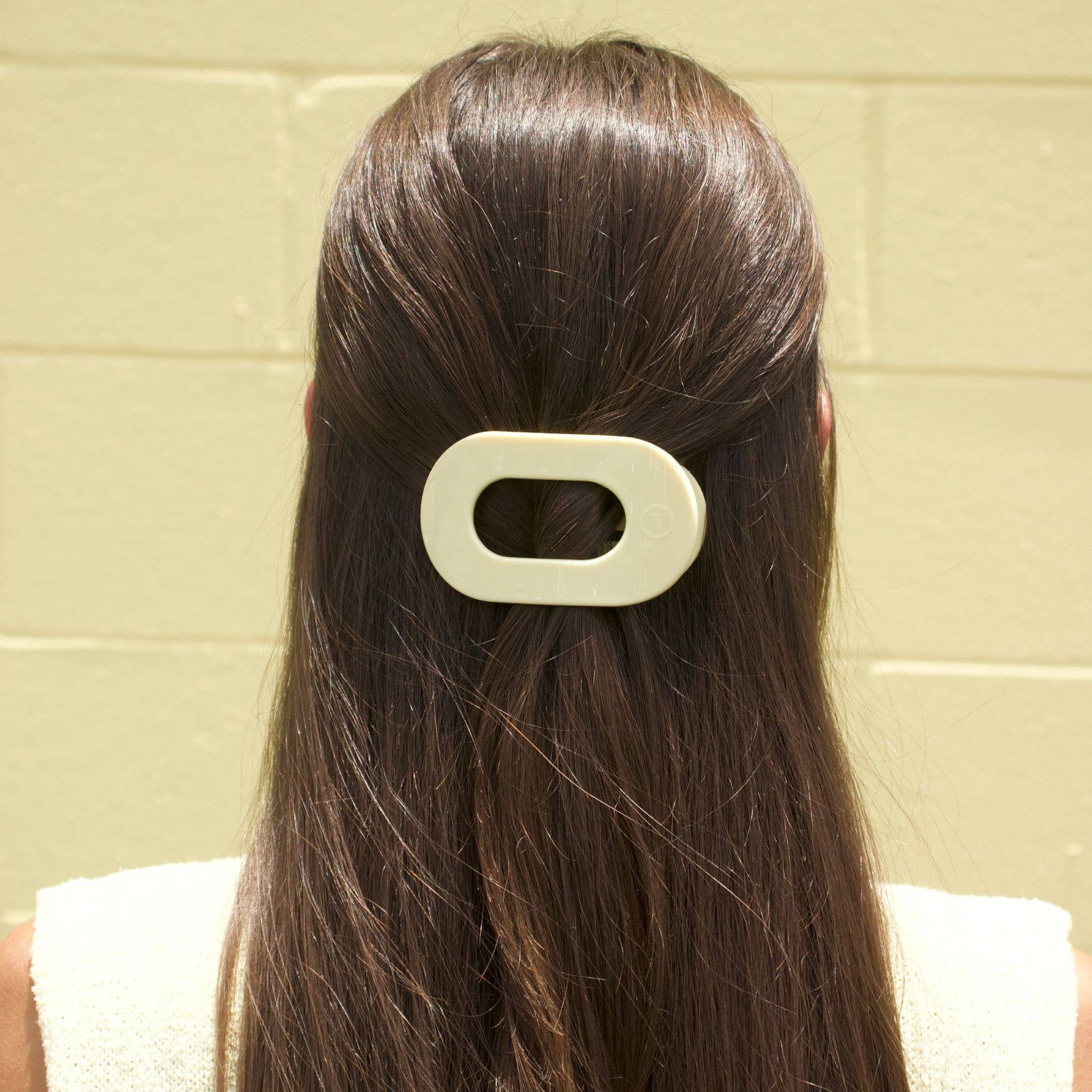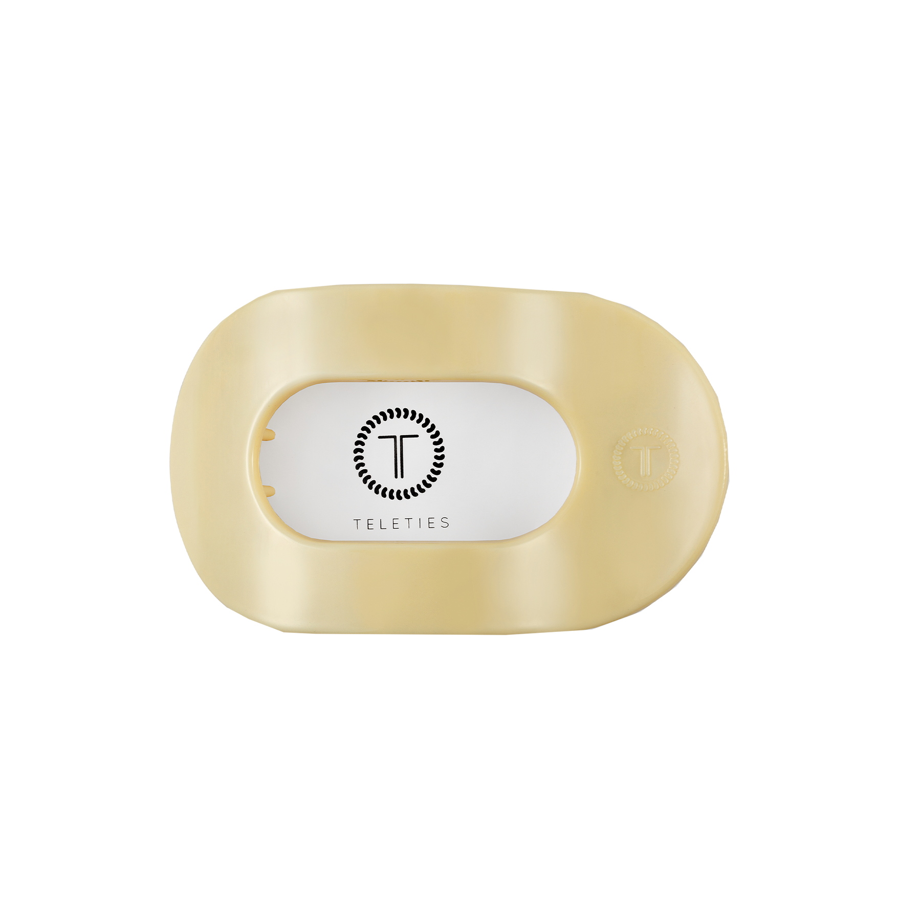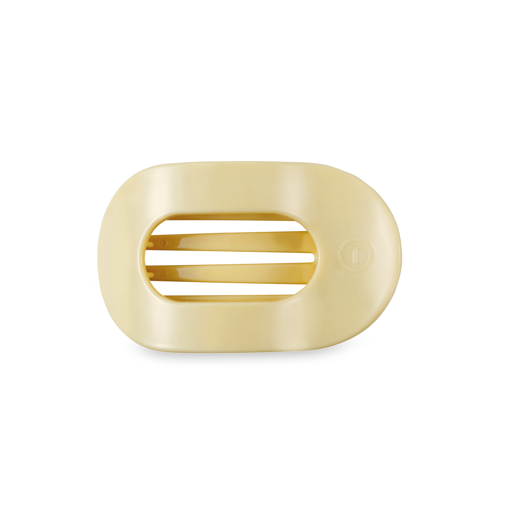Lay flat and relax with the new TELETIES Butter Yellow Small Flat Round Hair Clip in Yellow. This hair clip is designed to allow you to lay back flat, do yoga, or sit comfortably in a seat with a headrest, and it is made with the same material that is nearly unbreakable.