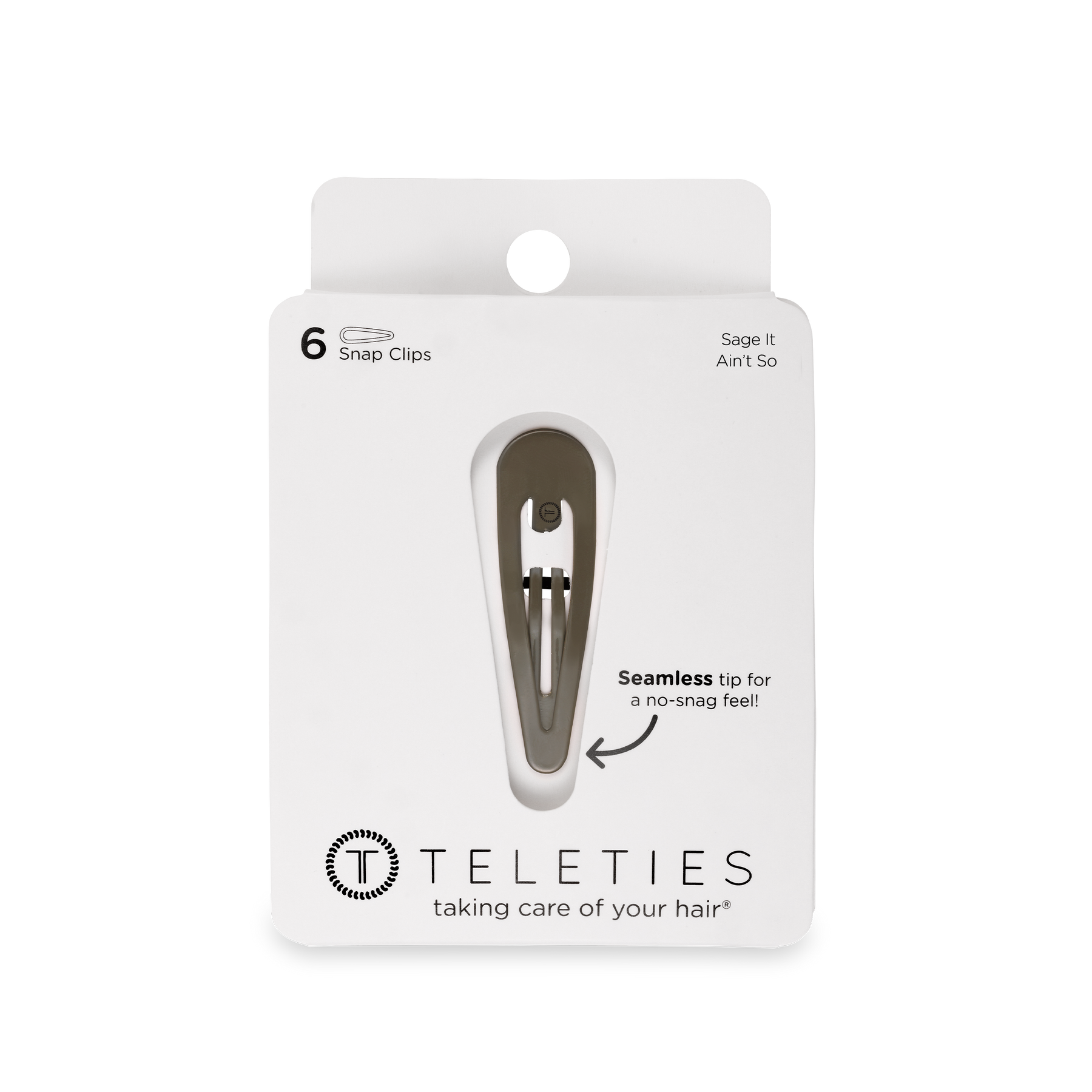TELETIES Sage It Ain't So Snap Clips (6Ct) in Sage Green offer a secure seamless tip for a no snag feel. Perfect for all hair types, these stylish barrettes provide a gentle yet firm hold, whether you're styling or simply pulling back strands. Available in a range of colors, TELETIES Snap Clips combine functionality with flair, ensuring your hair stays put all day long.