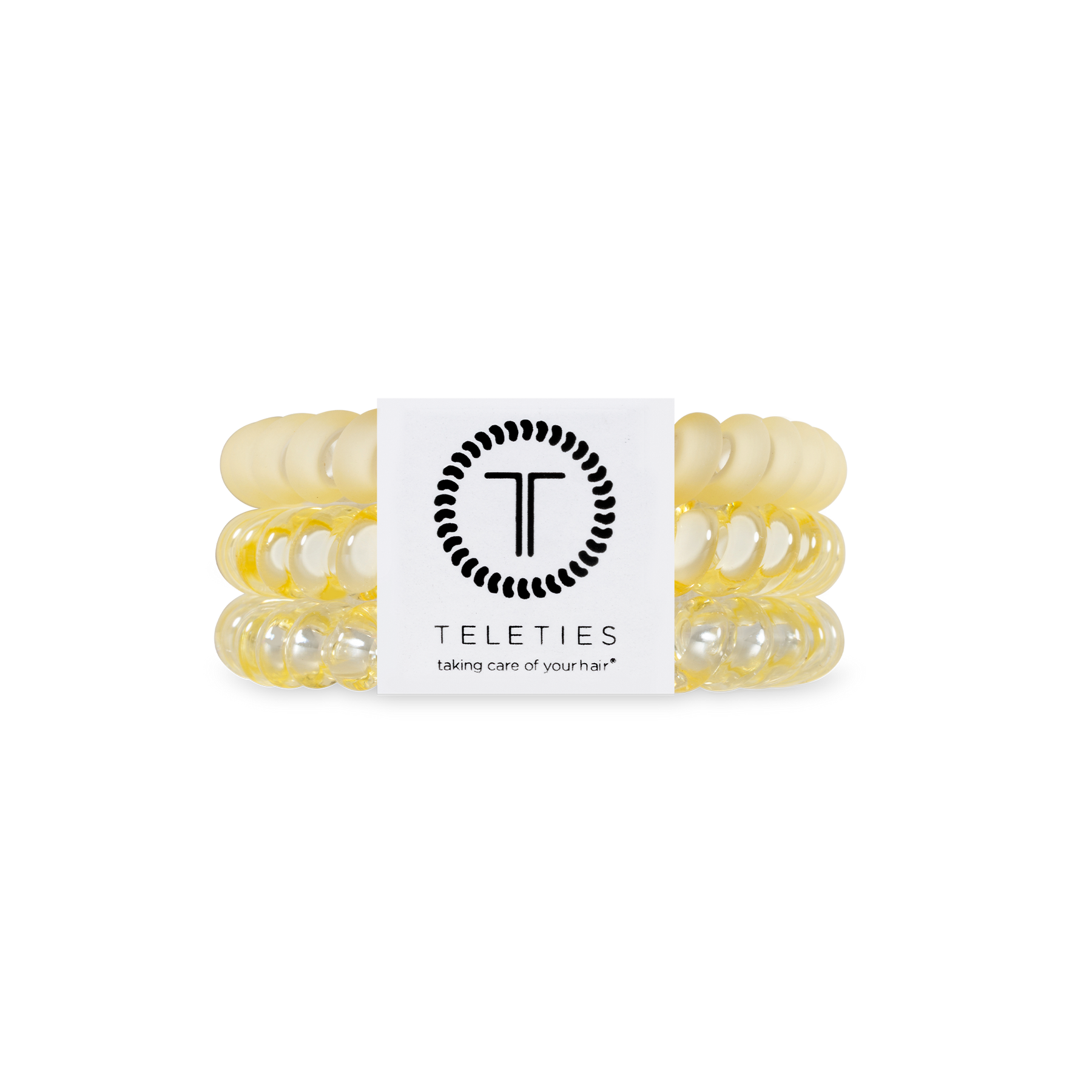 Butter Yellow Small Hair Ties in Yellow offer a strong grip without damage, doubling as a chic wrist accessory when not in use. Your new favorite hair essentials all year round.