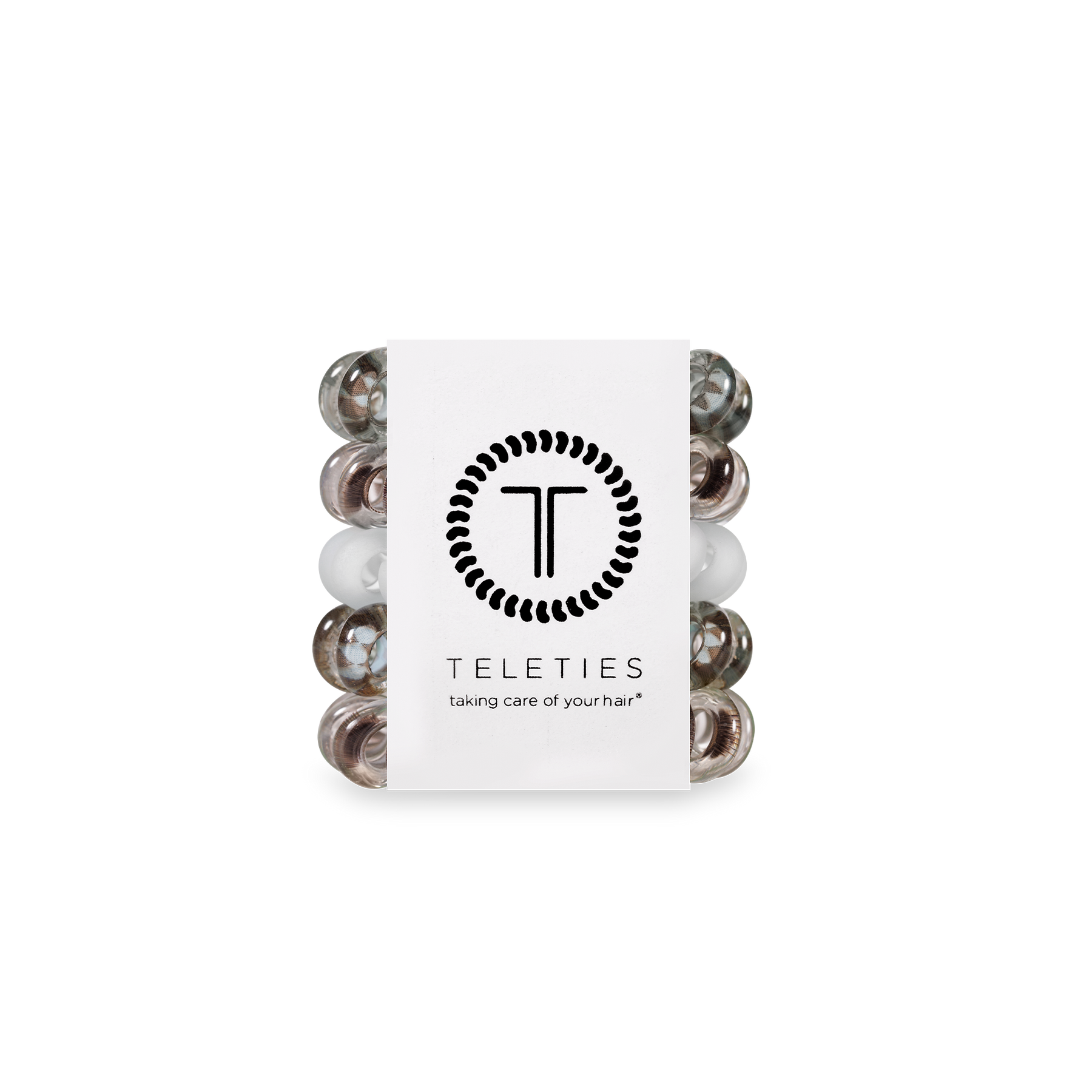 Truly Taupe Tiny Hair Ties in Blue and Taupe are the ultimate solution for securing braid ends, styling little kids' hair, or managing ultra-thin strands. These mini hair coils are designed to fit an adult finger like a ring rather than a bracelet, offering a strong, damage-free grip that keeps hair in place all day—without breakage, creases, or headaches.
